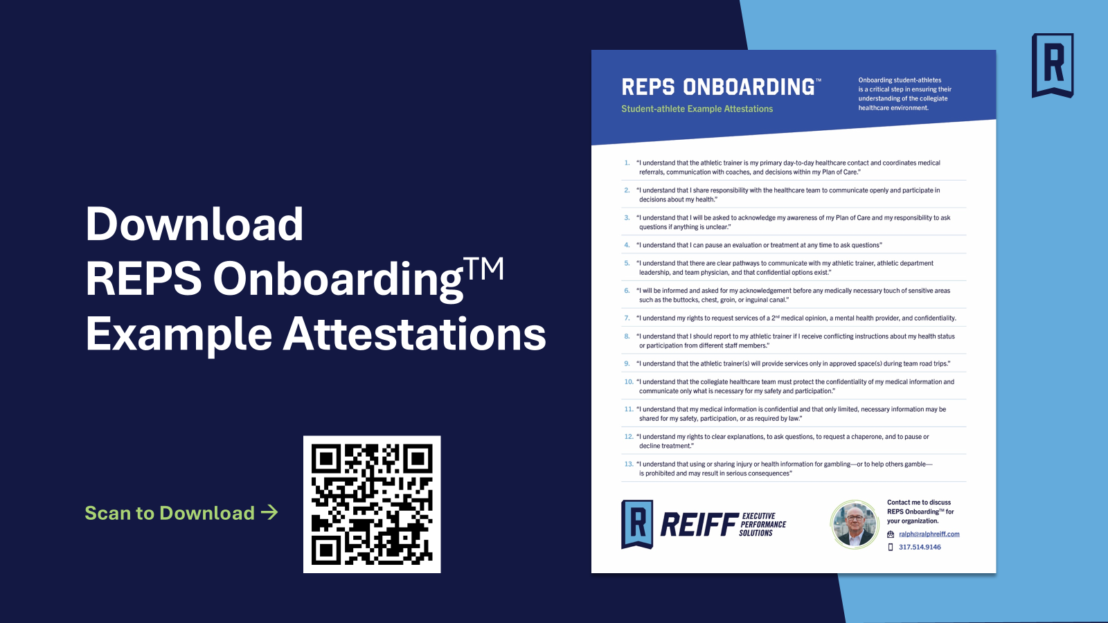 Ready to build a comprehensive onboarding program for your student-athletes? Discover how REPS Onboarding™ can help your department move beyond compliance and create a student-centered onboarding experience. Contact Ralph at www.ralphreiff.com